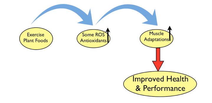 | The emerging case against antioxidant supplements Len Kravitz, Ph.D. Introduction Skeletal muscles are intricately designed molecular machines for producing work and force. During exercise, particularly more intense endurance training, free radicals are produced from mitochondrial and non-mitochondrial sources. These free radicals have both beneficial and harmful actions in biological tissues. To thwart the negative effects of free radicals, exercise enthusiasts have followed the advice of some experts with the supplementation of large does of antioxidants, including vitamin C, vitamin E and carotenoids. Newer research suggests this supplementation may actually blunt favorable adaptation in muscle (Merry and Ristow, 2015) and is the focus of this column. What is Oxidation and Reduction? Atoms are composed of a nucleus, neutrons, protons and electrons. Protons are the positively charged particles near the nucleus and electrons are the negatively charged particles that surround or 'orbit' around the atom. Chemical reactions tend to involve the movement of electrons, leading to the formation or breaking of chemical bonds. Oxidation is a term that means the loss of one or more electrons. These molecules losing the electrons are said to be oxidized. Some atoms and molecules in the body lose electrons more easily than others. Oxidation occurs in conjunction with a chemical process called reduction. Reduction is the process a molecule gains one or more electrons. Therefore, in an oxidation-reduction reaction (referred to as a redox reaction), one atom or molecule will transfer an electron(s) to another molecule. What is a Free Radical or Reactive Oxygen Species? Usually, reactions in the body do not leave a molecule with an odd, unpaired electron. But when this occurs, free radicals are formed. Free radicals are very unstable and assault (or react) with other compounds, trying to capture that needed electron to gain stability (i.e., become less reactive). When the 'besieged' molecule loses its electron, it becomes a free radical itself, beginning a chain reaction. Once the process is started, it can cascade leading to damage to cell membranes, enzymes and DNA (Steinbacher and Eckl, 2015). Oxygen-derived free radicals, called reactive oxygen species (or ROS, because they contain oxygen molecules), are formed in the mitochondria (energy power house of the cell) and various enzyme reactions as part of normal aerobic life. It is important to note that not all ROS are 'bad.' Some ROS help to fight off viruses, bacteria and unwanted microbes in the cell. However if too many ROS are formed, they may contribute to serious health conditions such as heart disease and cancer. Alas, free radicals can come from the sun (or any type of radiation), environment (including cigarette smoke and pollution), household chemicals (pesticides), unhealthy fats and stress. What are Antioxidants and Oxidative Stress? Antioxidants benefit the body by neutralizing or disarming the ROS, interrupting the ROS chain of reactions. Antioxidants donate an electron to ROS to stabilize them, without becoming free radicals themselves. The body cells manufacture many of these antioxidants to ward off invading organisms. Antioxidants also occur naturally in plant-based foods. Some of the well-known antioxidant compounds are flavanols (found in chocolate), resveratrol (found in wine), catechins (found in tea) and lycopene (found in tomatoes). Other popular antioxidants include vitamins A (beta-carotene), C and E. Oxidative stress refers to an unbalanced cellular state in which the ROS outnumber the antioxidant defenses. Oxidative stress is associated with the pathogenesis of numerous diseases, including cancer, cardiovascular disease, diabetes and neurodegenerative diseases (Merry and Ristow, 2015). The Antioxidant Role of Exercise Merry and Ristow (2015) explain that exercise increases, or upregulates, the production of many antioxidants. The authors continue that the natural antioxidant effect of exercise is potentially a mechanism underlying the health-promoting benefits of regular exercise. From their research review, the scientists argue that over-supplementation with antioxidant supplementation may be potentially harmful to the ROS functioning as well as the ROS signally mechanisms. Merry and Ristow continue that exercise helps to regulate antioxidant responses in a more specific manner, counteracting the unwanted effects of non-discriminately scavenging ROS. Antioxidant Supplementation for Exercise: To Supplement or Not Supplement? Merry and Bristow (2015) highlight that the cellular investigation of the effects of antioxidant supplementation on exercise training-induced alterations is at an preliminary level. Recently, Cumming et al., (2014) investigated the effects of vitamin C and E supplementation and endurance training on adaptations in endogenous antioxidants and heat shock proteins (HSP). Thirty seven males and females were randomly assigned to receive Vitamin C and E (C + E; C: 1000 mg, E: 235 mg daily) or placebo group, and underwent endurance training for 11 weeks. The study results indicate that vitamin C and E supplementation did not positively or negatively affect the activation of several metabolic pathways measured. However, the vitamin C and E group showed indications of inhibited tolerability toward exercise-induced stress that in the long run, or during periods of very intense exercise, may delay recovery and not allow for optimal gains in physical performance. In another recent investigation (Paulsen et al., 2014), 54 young women and men were randomly allocated to receive either 1000 mg of vitamin C and 235 mg of vitamin E or a placebo daily for 11 weeks. During supplementation, the participants did endurance training consisting of three to four running sessions per, divided into high-intensity interval sessions >90% of maximal heart rate (HRmax) and steady state continuous sessions. Maximal oxygen uptake, s