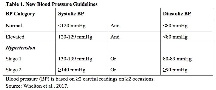 What Fitness Pros Need to Know About New Blood Pressure Guidelines By Zachary Fennel and Len Kravitz, PhD Introduction: Recently, at the November 13, 2017 American Heart Association annual meeting in Anaheim, CA, the American College of Cardiology and American Heart Association released their new high blood pressure (i.e., hypertension) guidelines (See Table 1). The updated classifications now categorize hypertension stage one as resting systolic blood pressure of 130-139 mmHg or a resting diastolic blood pressure of 80-89 mmHg (Whelton et al., 2017). This updated criteria raises the previous prevalence of adults with hypertension from a reported 32% to 46% in the United States (Whelton et al.). From a health perspective, for the last 100 years scientists have observed a strong association with high blood pressure and the risk of clinical health complications (i.e., high cholesterol, kidney disease, obesity) and death from stroke and heart disease (Whelton et al., 2017). Whelton and colleagues continue that >50% of deaths from coronary heart disease and stroke occur among individuals with hypertension. The researchers explain that the rationale for the new guidelines is based from a preponderance of studies showing a high association between elevated systolic and diastolic blood pressure to cardiovascular disease. This column will review current research on high blood pressure and ways to effectively manage it with exercise and lifestyle. |  | Blood Pressure and Aging It is particularly important for personal trainers to educate clients that high blood pressure tends to increase in stages as a person ages (Whelton et al. 2017). With aging populations, there tends to be an increased incidence of 'isolated high systolic blood pressure' (Lelbach and Koller, 2017), where systolic blood pressure is elevated yet diastolic blood pressure is not. Whelton et al. add the populations developing hypertension over their lifetimes have been shown to be higher for African Americans and Hispanics as compared to whites and Asians. This gradually increasing blood pressure with age is primarily associated with structural changes in the artery walls, particularly with large arteries losing elasticity and becoming stiffer and thicker (i.e., arteriosclerosis) and the gradual development of plaque in the arteries (i.e., atherosclerosis). Lelbach and Koller submit that aging also leads to a reduced efficiency and ability of the kidneys to excrete salt, resulting in an unhealthy overload of the circulatory system, affecting both systolic and diastolic pressures. What is the Association of Obesity to High Blood Pressure? Lelbach and Koller (2017) highlight that in the past 20 years the risk of developing hypertension from obesity has been increasing at an alarming rate. Obesity, places a consistent strain on the heart's cardiac output (i.e., heart rate times stroke volume). Other factors associated with hypertension and obesity included disturbances with the sympathetic nervous system (which causes arteries to constrict), sodium retention, and metabolic abnormalities such as glucose intolerance (a precursor to pre-diabetes and type 2 diabetes) (Lelbach and Koller). What is the Effect of Exercise on Blood Pressure? Whelton et al. (2017) highlight that epidemiological studies have shown that increasing levels of physical activity and fitness result in lower levels of blood pressure and hypertension. It is meaningful for fitness professionals to share with clients that even modest levels of physical activity will help to decrease the incidence of hypertension (Whelton et al.). As well, personal trainers should educate clients that cardiovascular exercise (90-150 minutes/week; 65%-75% of heart rate reserve) and resistance training (90-150 minutes/week; 50%-80% of 1RM; multiset training with at least 6 total body exercises; 10 repetitions/set) have been shown to lower blood pressure, although the data indicate that cardiovascular exercise appears to be more effective (Lelbach and Koller, 2017). Summarizing the exercise intervention data, Whelton et al. state that on average there is an approximately 2 to 4 mmHg and 5 to 8 mm Hg decrease in adult patients with normotension and hypertension, respectively. It's important to note that individual decreases in blood pressure are variable; these numbers represent averages from studies including multiple populations and differing exercise protocols. Lelback and Koller (2017) explain that the blood pressure lowering mechanisms from cardiovascular exercise include a decrease in epinephrine and norepinephrine levels leading to a decrease of artery constriction, enhanced blood vessel function, and artery structural adaptations. All of these adaptations lead to improved blood circulation, resulting in a potential decrease in resting blood pressure. What Dietary Strategies are Helpful in the Management of High Blood Pressure? In the new blood pressure guidelines, Whelton et al. (2017) note the the DASH (Dietary Approaches to Stop Hypertension) diet has been shown quite effective to help reduce blood pressure. The DASH diet encourages users to reduce the sodium in their diet and consume a diet rich in fruits, vegetables, whole grains, low-fat dairy products, with reduced content of saturated and total fat. Whelton et al also note a reduction in alcohol consumption is also beneficial. The authors state that in addition to the DASH diet, it appears that low-carbohydrate and vegetarian diets have been shown to help reduced blood pressure. In regards to sodium intake, the new guidelines suggest that an optimal goal is <1500 mg/day and to aim for a at least 1000 mg/day. Figure 1 depicts other strategies that have reported varying levels of success for reducing blood pressure. |  | Figure 1. Nonpharmacological Interventions that have shown to have Varying Effects on Lowering Blood Pressure. Source: Whelton et al., 2017. | Final Blood Pressure Thoughts! With the growing number of hypertens