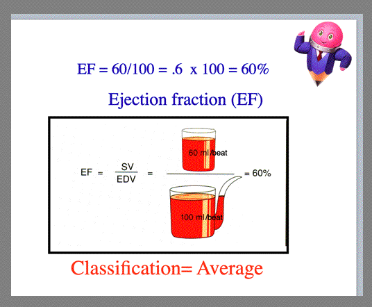 An average ejection fraction classification is 60%