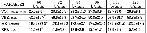 ^p<0.05, 60<72, 96, 108, and 120 b/min |