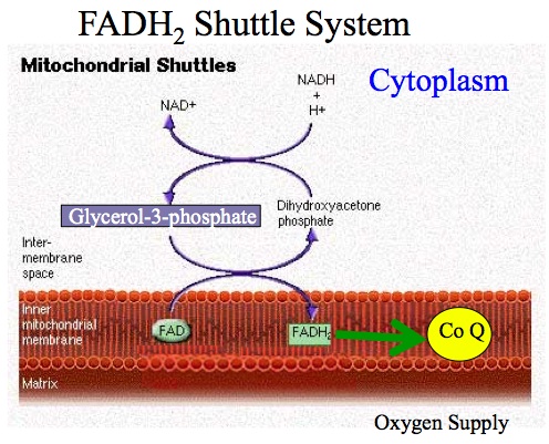 Shuttle of NADH +H+ to FAD in the Mitochondrion in Steady State Conditions