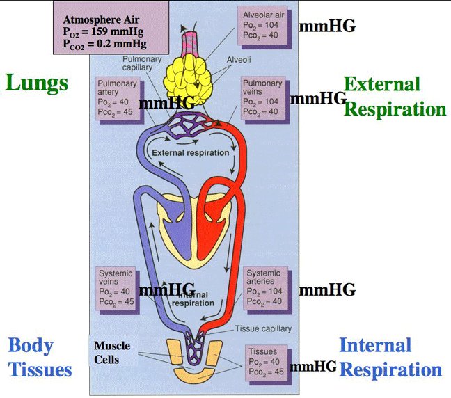 | Class, print the page below and practice putting in the correct partial pressures throughout the body. Make sure you put the UNIT too (mmHg). This will definitely be a question (worth about 14pts) on Exam 4. Please check your work with answers below. |