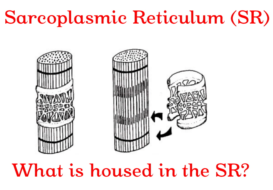 Calcium ions are housed in the sarcoplasmic reticulum (SR). The SR 'wraps' around the contracticle proteins in muscle fibers.
